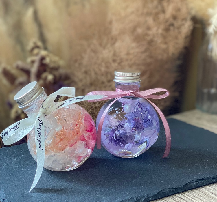 (所要時間約30分~1時間)柑橘のドライフルーツと豊富な花材からお好きなお花を選んで自由に作っていただきます。・ハーバリウム S (50ml) ¥1500・ハーバリウム M(100ml) ¥2500・ハーバリウム L (200ml) ¥3000