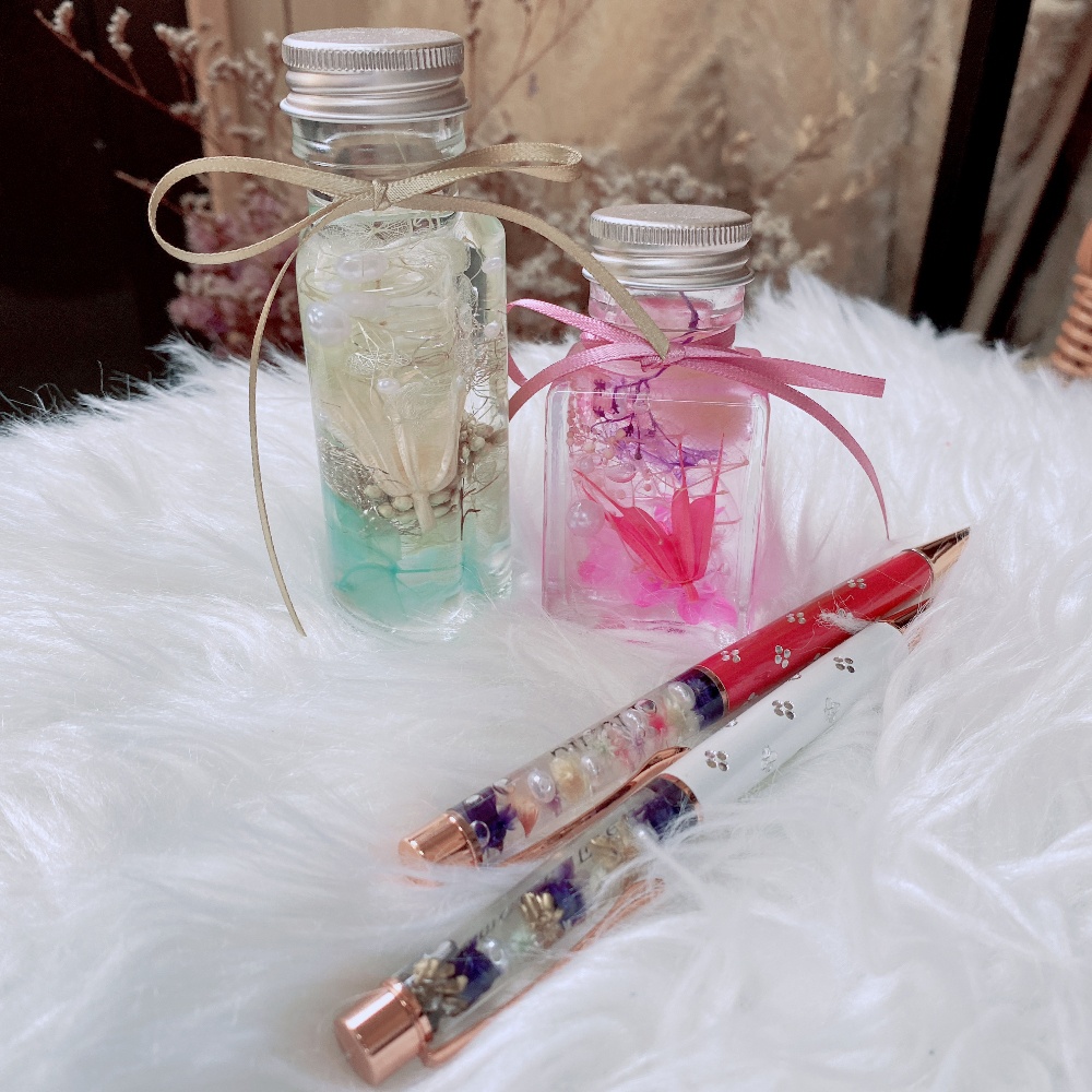 (所要時間 約60分)人気のハーバリウムボールペンとハーバリウムSサイズ(50ml)2点製作できるセットです。・ハーバリウムボールペン&ハーバリウム セット ¥3000