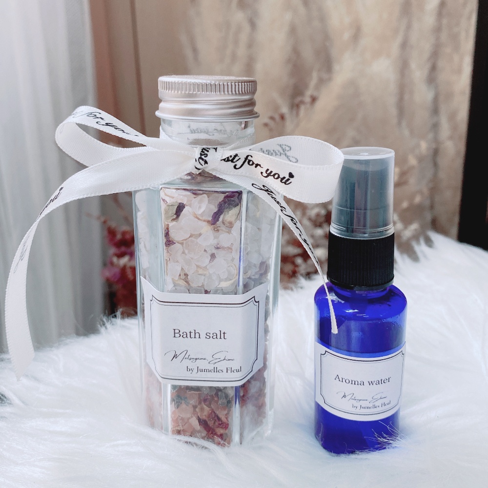 aroma water(所要時間 約30分)ハーブバスソルト作り体験とエッセンシャルオイル)をブレンドして作るアロマスプレー作り体験。・バスソルト&アロマスプレー作り体験 ¥2,000※アロマスプレーはブレンドレシピ10種類 から1つ選んで作れます。(肩こり頭痛・虫除け・自律神経を整える・オレンジアールグレイのような香り など)